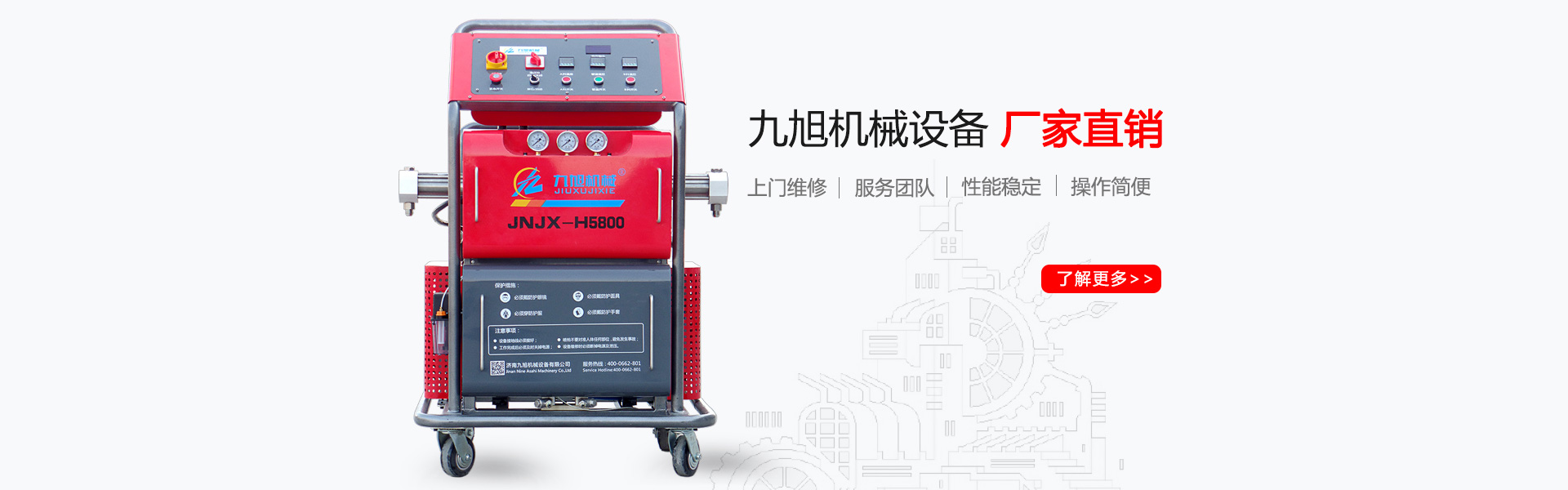 山東九旭機(jī)械科技有限公司歷經(jīng)十幾年的發(fā)展,已成長(zhǎng)為聚氨酯設(shè)備行業(yè)頗具實(shí)力的設(shè)備制造廠家之一。企業(yè)主要產(chǎn)品:聚氨酯噴涂機(jī)、聚氨酯發(fā)泡機(jī)、聚氨酯澆注機(jī)、聚脲噴涂機(jī)等,關(guān)于設(shè)備配件(聚氨酯高壓噴槍、槍嘴、加熱管道、料塊、摩擦副、增壓泵、混合式、提料泵等)也是堅(jiān)持最好的質(zhì)量服務(wù)用戶,并承接:外墻保溫、冷庫(kù)保溫發(fā)泡等工程...